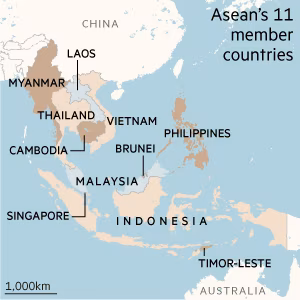 توافقهای جدید برای انجمن ملل آسیای جنوب شرقی (آسهآن) که یازده عضو دارد، اهمیتی اساسی دارد. این بلوک اکنون تأمینکنندۀ کالا به آمریکا در حجمی بیشتر از چین است، با وجود آنکه تولید ناخالص داخلی چین بیش از چهار برابر اقتصاد حدود ۴ تریلیون دلاری آسهآن است. در همین حال، آسهآن در پی تقویت روابط تجاری با چین نیز هست. روز سهشنبه، رهبران این بلوک توافق تجارت آزاد ارتقایافتهای با پکن در نشست کوالالامپور امضا کردند.