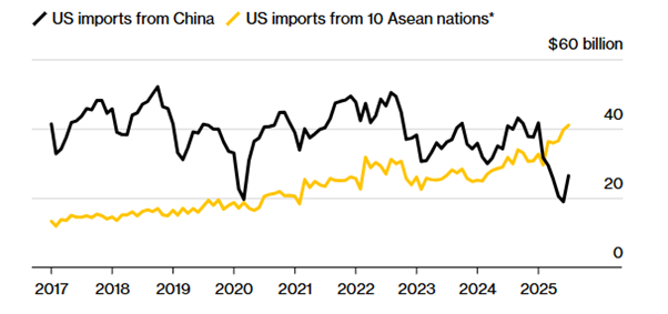 بزرگترین عامل در صادرات منطقه به آمریکا ویتنام است که در ماه ژوئیه حدود ۱۸ میلیارد دلار از ۴۱ میلیارد دلار صادرات منطقهای به آمریکا را به خود اختصاص داده بود. ترین نگوین، اقتصاددان ارشد بانک ناتیکسیس آسیا، گفت: «جزئیات هنوز مشخص نیست، از جمله اینکه کدام کالاهای ویتنامی مشمول معافیت خواهند شد یا چگونه قواعد مربوط به تغییر مسیر کالاها اعمال میشوند. اما روح غالب این است که ویتنام قصد دارد، حتی با وجود تنشهای فزایندۀ واشنگتن و پکن، در بازی تجارت با آمریکا برای بلندمدت بماند.»